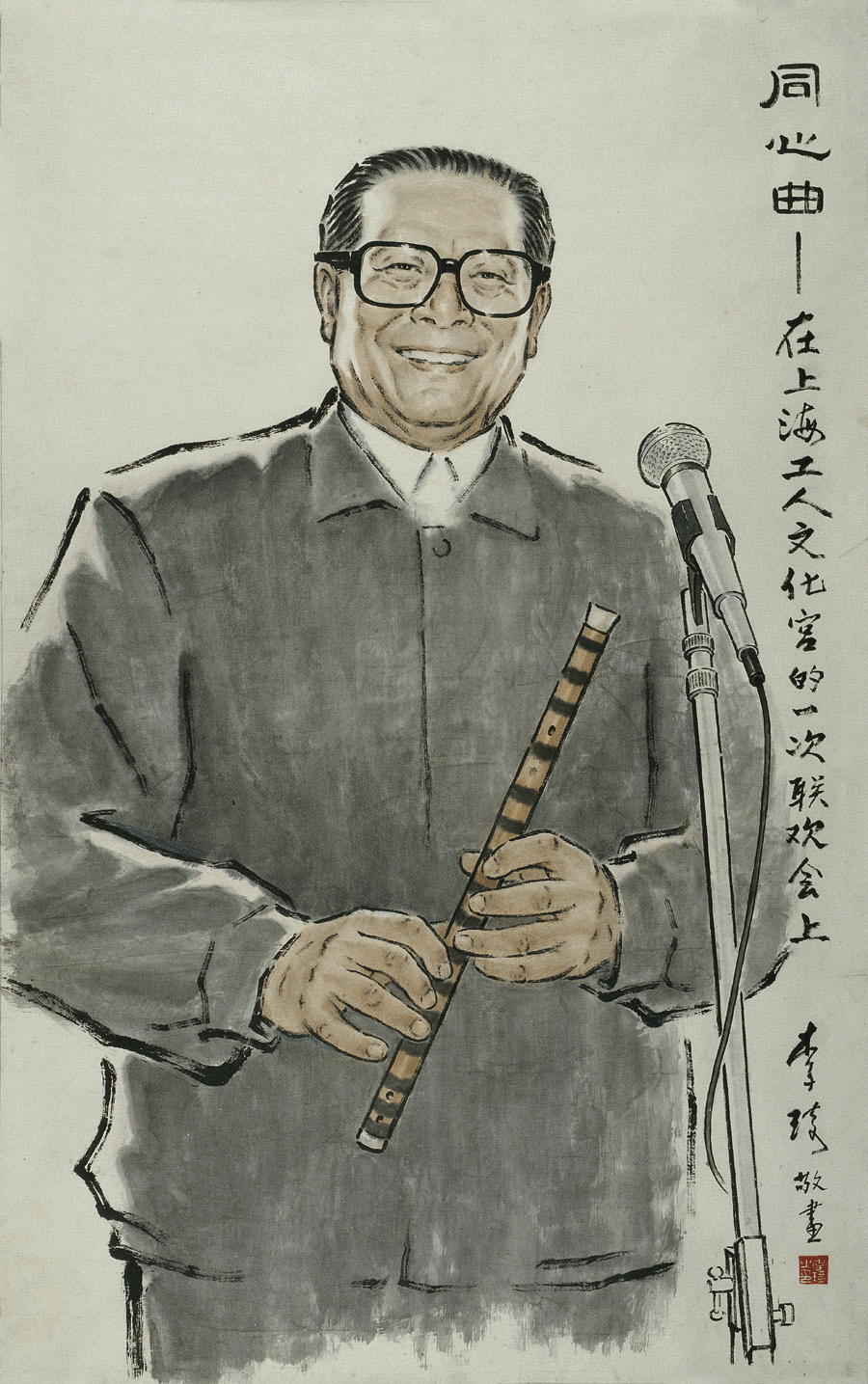 《同心曲—江泽民在上海工人文化宫的一次联欢会上》-中国画--104cm×167cm-1996年